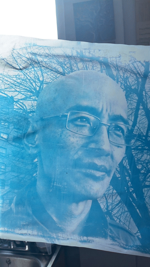 I used sunlight to expose these cyanotype portraits. Sunlight is a certain frequency, and we see different frequencies of light than insects do for example. They see differently, they have a different reality. I will stop there before I start talking about alternate realities!